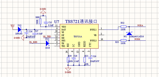 W1是TVS管1SMA40CAT3G,下面是芯片上的说明:RX上有信号时,TX和TXI就是有信号,是RX的回显,芯片本来就是这样处理的吗