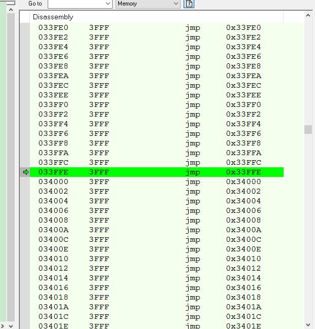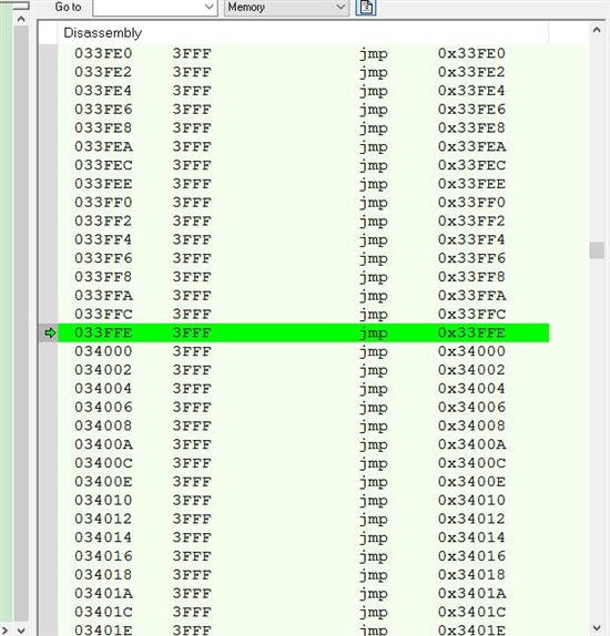 msp430FR6972有时会死在RAM区033FFE地址,disassembly窗口显示jmp 源地址,现在情况是:复位、掉电、调试复位按钮都无法不能从死机情况中恢复,重新下载程序可以恢复正常,晶振也换过,没有效果。请各位大神给看一下