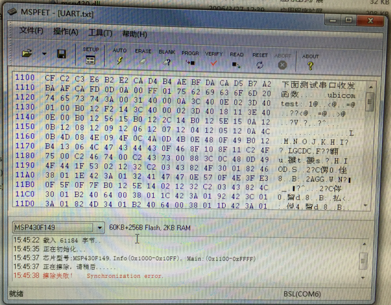 帮同学做了个430的板子,焊接的时候先焊接了最小系统部分,但是无法下载(BSL)。下载时提示同步失败(synchronization failed)。