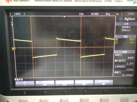 测了一下p1.0输出波形,怎么是这样的?和预期不太一样,感觉应该是一个脉冲宽度为50000个时钟周期的方波,求解答。