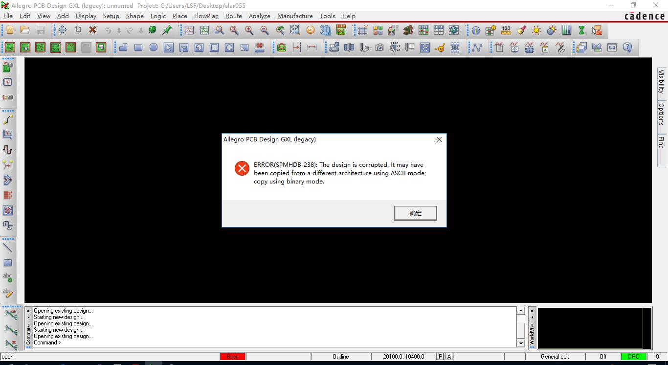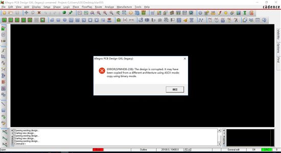 ERROR(SPMHDB-238):The design is corrupted.It may have been copied from a different architecture using ASCII mode ; copy using binary mode.