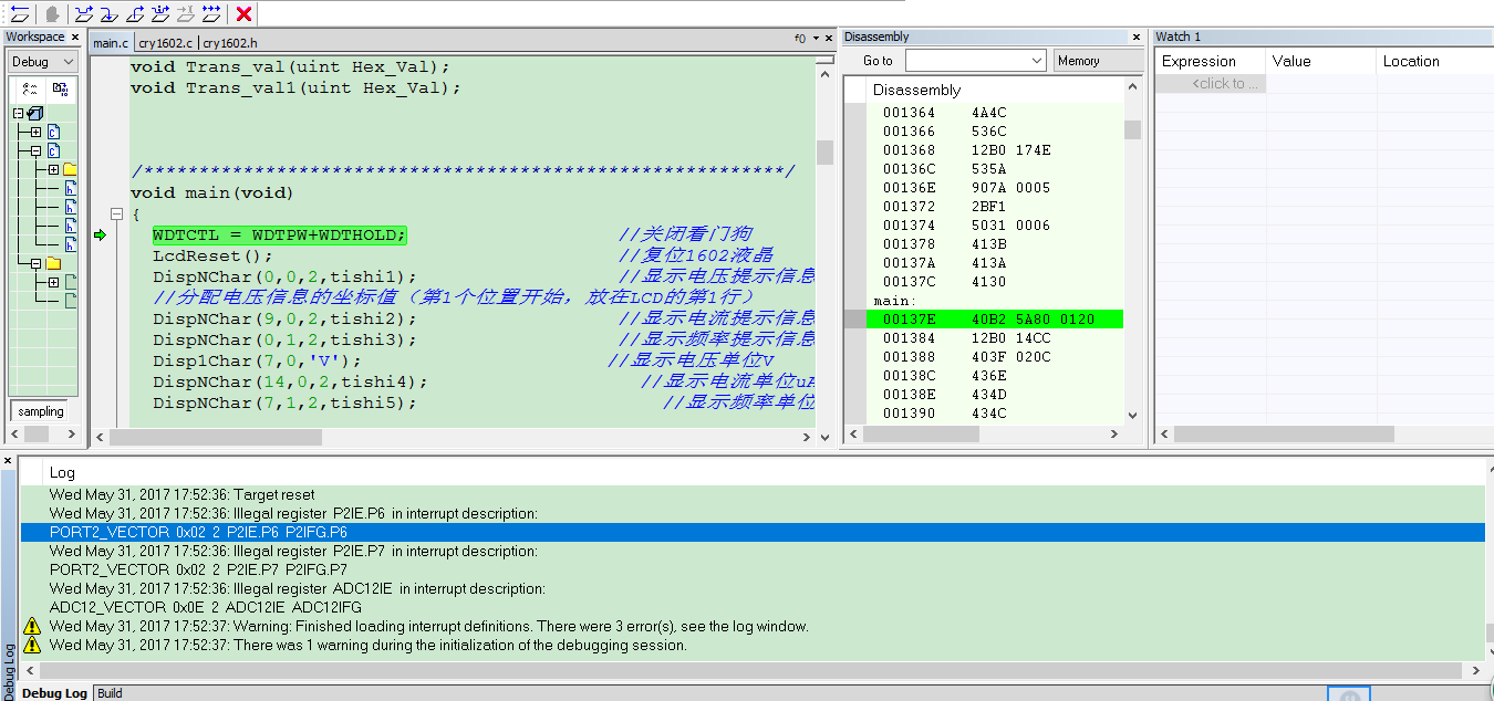//有一个报错:目前的解决方案是注释掉上面一行的语句,并且把1602.C里面的int,char定义放到.h里面去