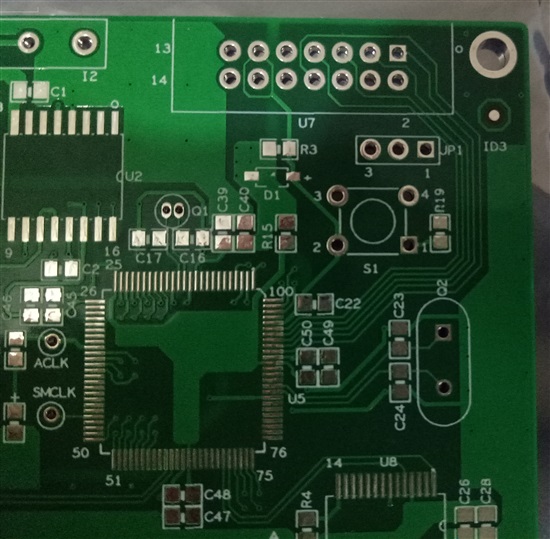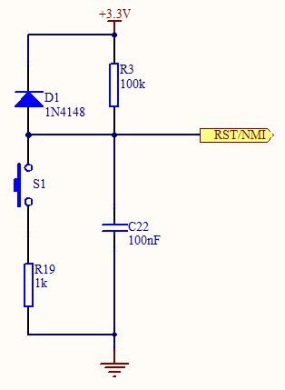 板子上用的单片机是MSP430F6459,复位电路如下:PCB板上的电路对应如下: