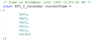 RTC_C_initCalendar(¤tTime,RTC_C_FORMAT_BINARY );//存取时间,二进制格式
