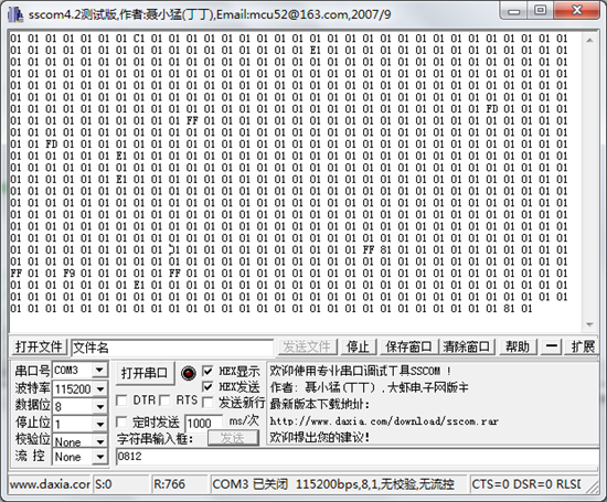 我最近在做的项目里面用到了MSP430FR5959这块芯片(和MSP430FR5969同类),现在想使用MSP430FR5959的串口通信功能,用了一块CH340T作为UART转接USB的通信方法,我的需求是将430片内AD采样的数据定义为一个字符型数组后依次发送到电脑,但是现在配置好程序之后发现电脑上面用串口调试助手看到的数据很不对劲:a.串口发送数据经常出错,错误率已经超过了user guide提供的误差范围,而这个波特率是我按照官方例程设置的;b.串口调试助手上面显示的字符串速度太快,我尝试着给发送函数加上延时,发现加了延时函数之后串口调试助手上面显示字符的速度没有变化。