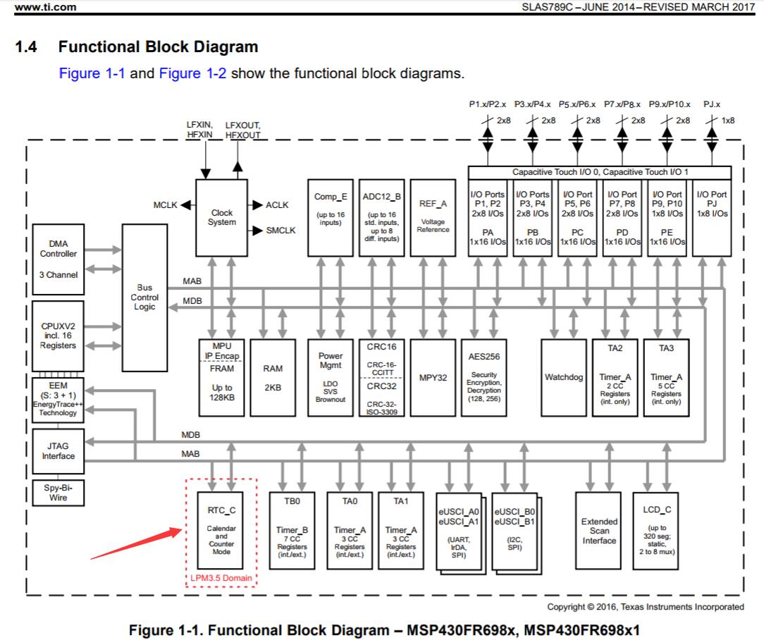 1.MSP430FR6989存在两个RTC硬件模块,中断向量只有一个(TI官网历程)。