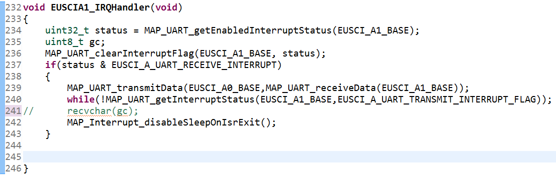 在使用MSP432接收触摸屏的发送来的语句时,只能接收到最后一位,其余位丢失。