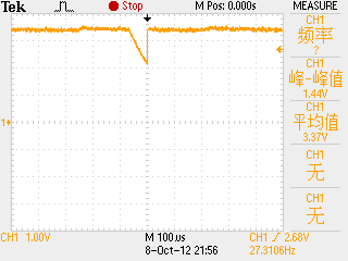 使用5418A做电源控制,IO输出高电平时输出以下波形,百思不得其解,请问各位有何见解。