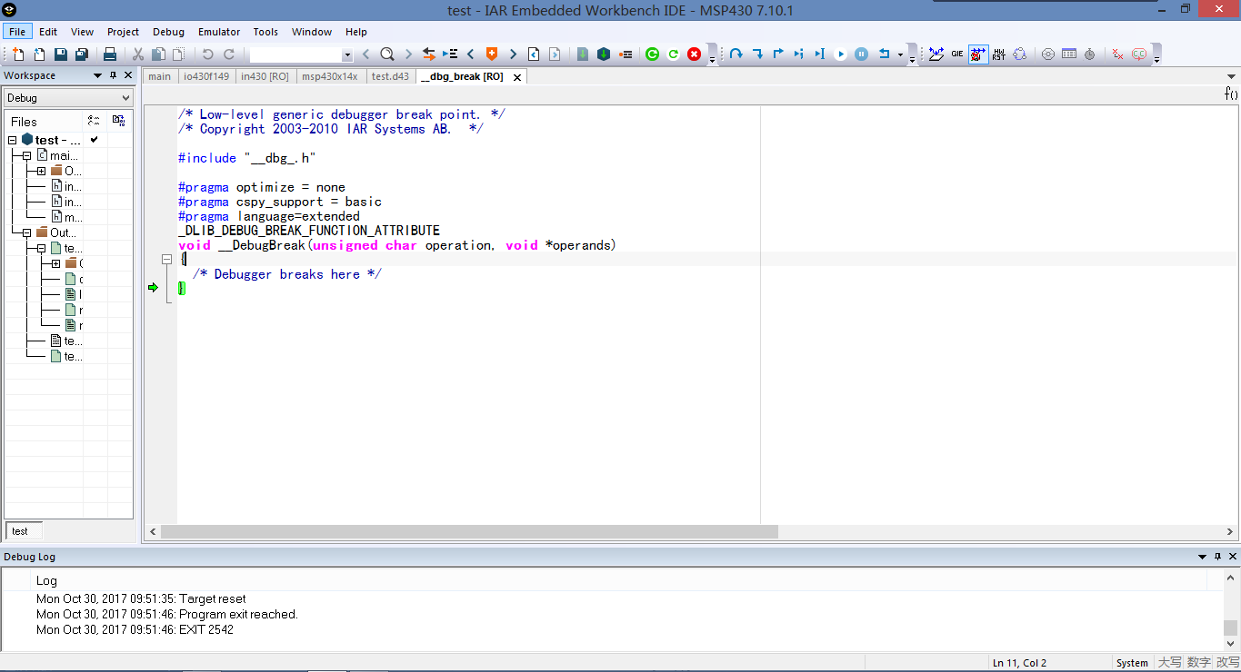 msp430f149,下载到开发板运行就跳到这个页面,不知道什么原因