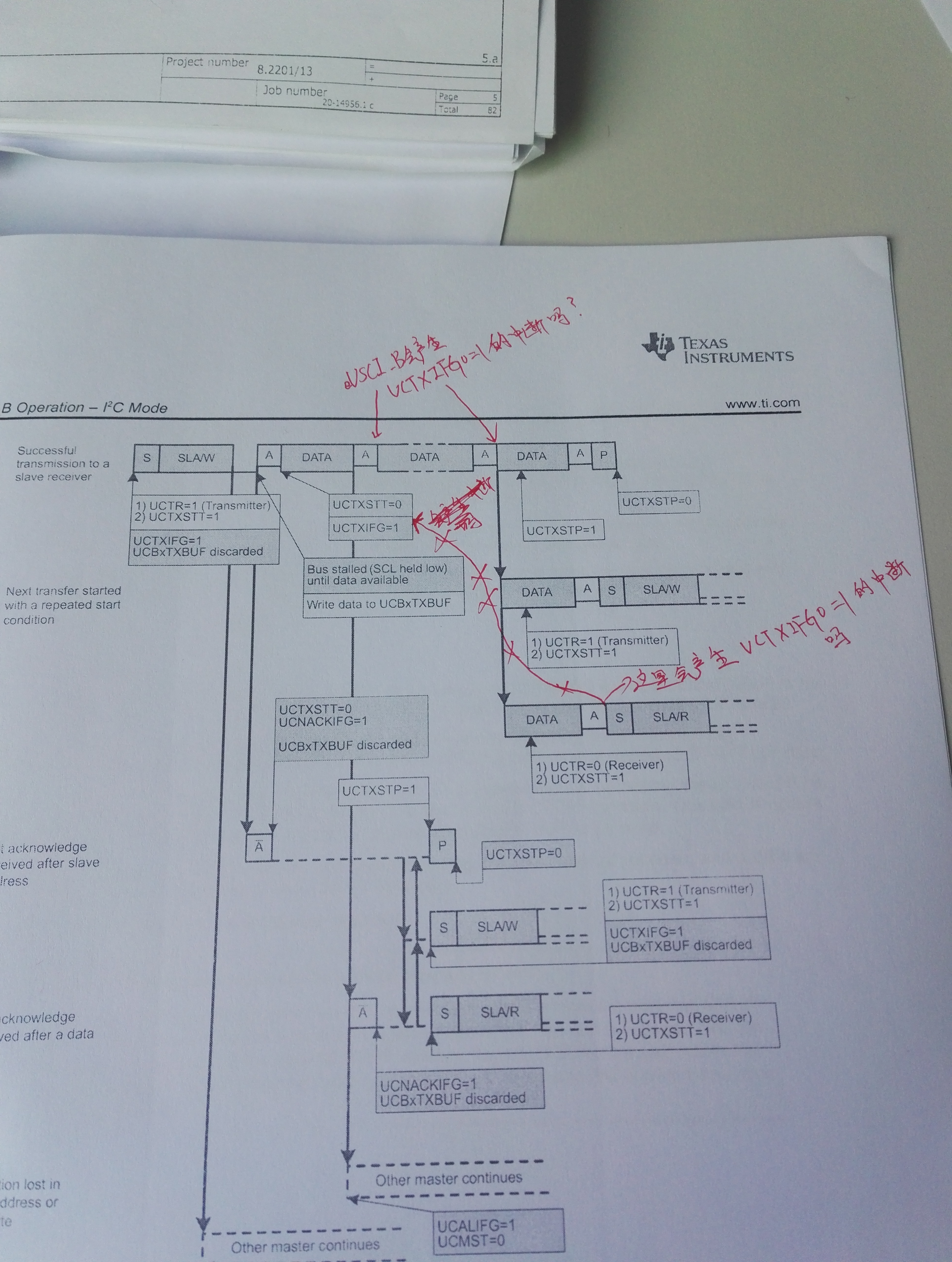2.注意到芯片手册后面还有一句话“If there is no data loaded to UCBxTXBUF before the acknowledge cycle, the bus is held during theacknowledge cycle with SCL low until data is written into UCBxTXBUF.”