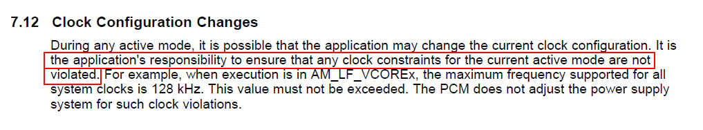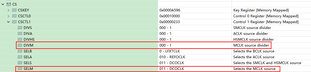 还有个问题就是如何看当前时刻MCLK的时钟频率以及运行的模式,如果说AM和对应的LPM寄存器都一样,那我怎么判断现在时刻是在AM_LDO_VCORE0还是LPM_LDO_VCORE0呢,CS时钟MCLK那个寄存器也一直是DCO的,没变过。