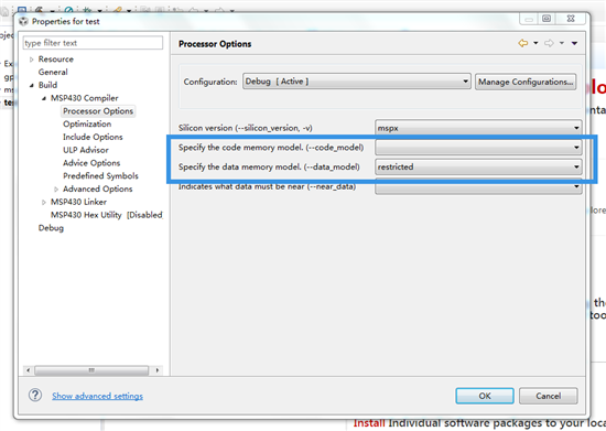 在IAR 中,可以target页面的Data Model选项中 选择Large模式, 即大地址模式, 那么,在CCS中应该如何设置?