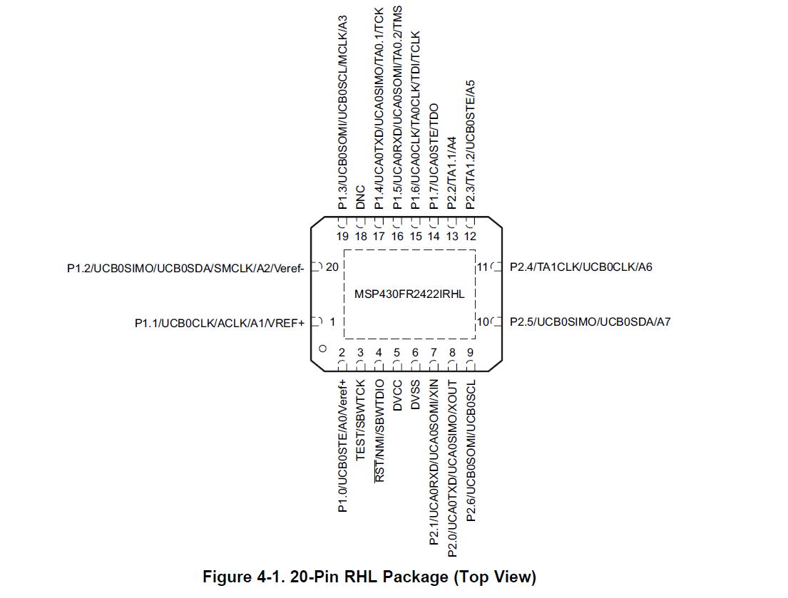 芯片为MSP430FR2422IRHLT,选用VQFN封装,最后检查时发现资料标注有误,我应该以哪个资料为准?图片如下:
