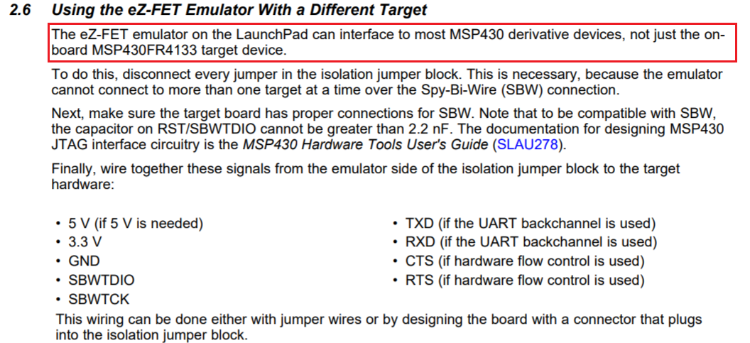 自己设计了一块遥控器主板,板上预留了一个SBW接口。我手上有一块EXP430FR4133的开发板,请问4133的开发板可不可以给它烧软件进去?