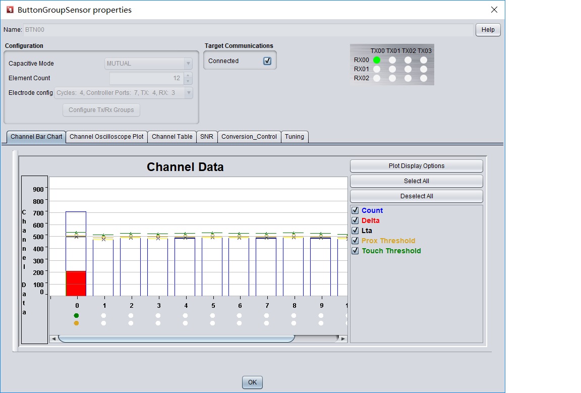 CDC版本为V1.60 触摸按键为互感式3X4 3个TX,4个RX