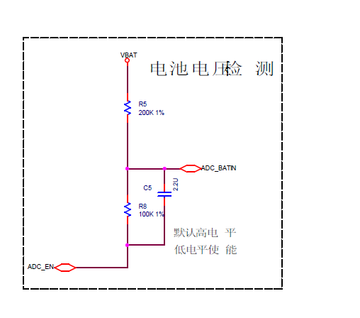 如图,当采样ADC12_BATIN点的电压时,ADC_EN管脚输出0并延时1秒后才开采样。