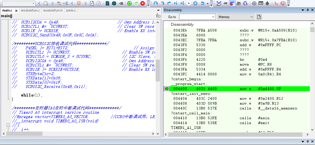 当主程序跑完到最后循环while(1)的时候,调试的时候程序只在汇编区域显示停止,不在C语言编辑区域显示,请问这是为何?