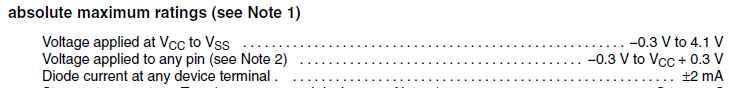 我在看别人的项目时,看到有人用MSP430F4794进行电压信号采集。在看数据手册的时候注意到,其极限电气参数规定了所有引脚的输入电压范围如下: