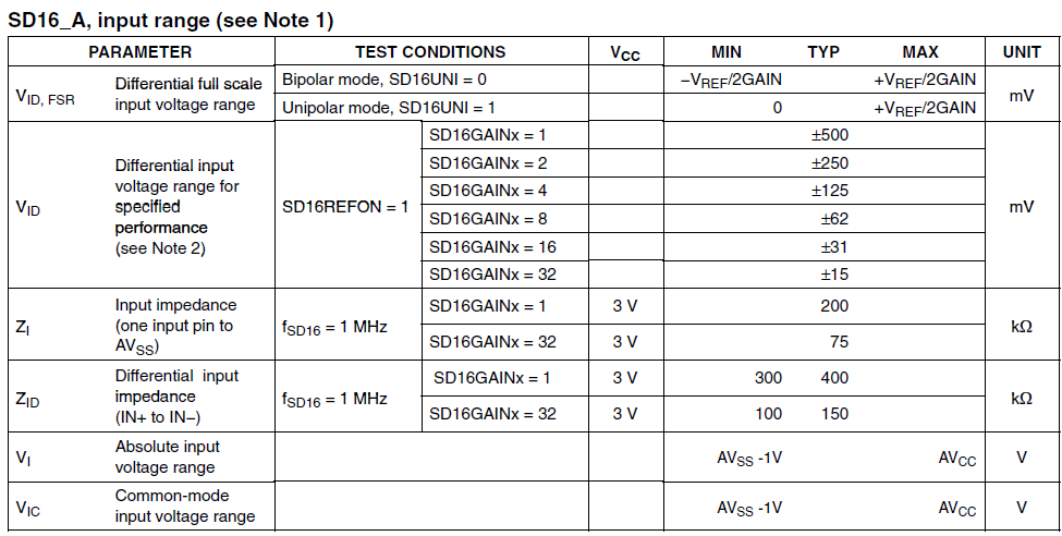 关于MSP430F4794的SD16_A的输入电压范围问题