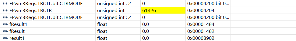 您好,请问一下,利用分享贴中计算CLA中TASK的时间,从观察窗看到EPWM.TBCTR改变,但是赋给变量后读出来的值为0?
