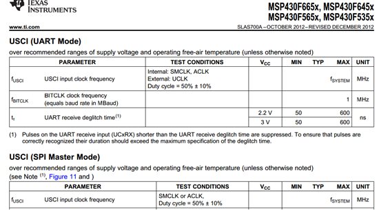 MSP430F5xxx的UART的最大速率是1Mbps,但是这个不一定实用。