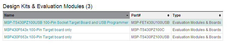 我看到的socket的连接有三个:MSP-TS430PZ100USB,MSP430F643x,MSP430F663X,他们在使用上有和区别?