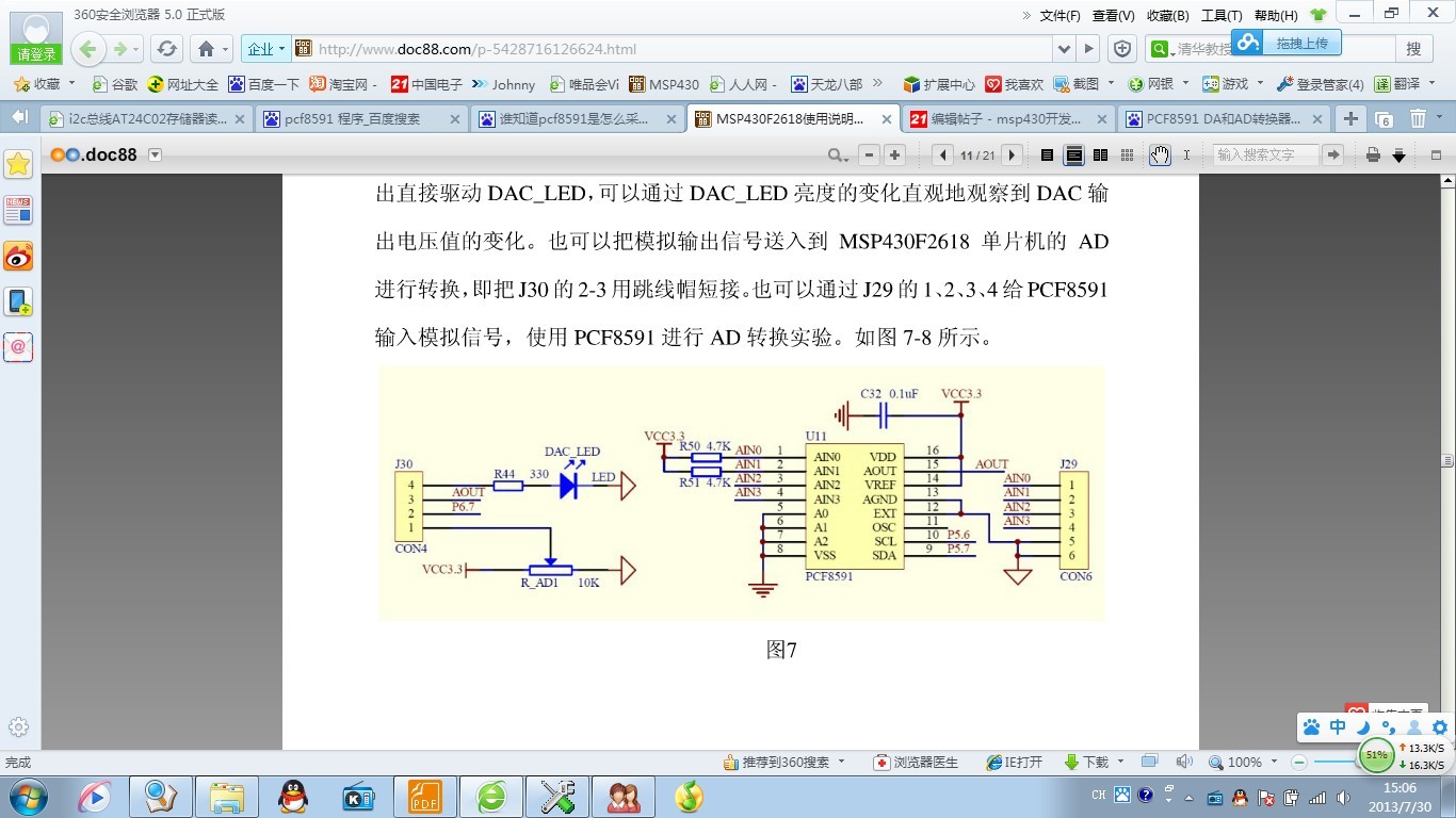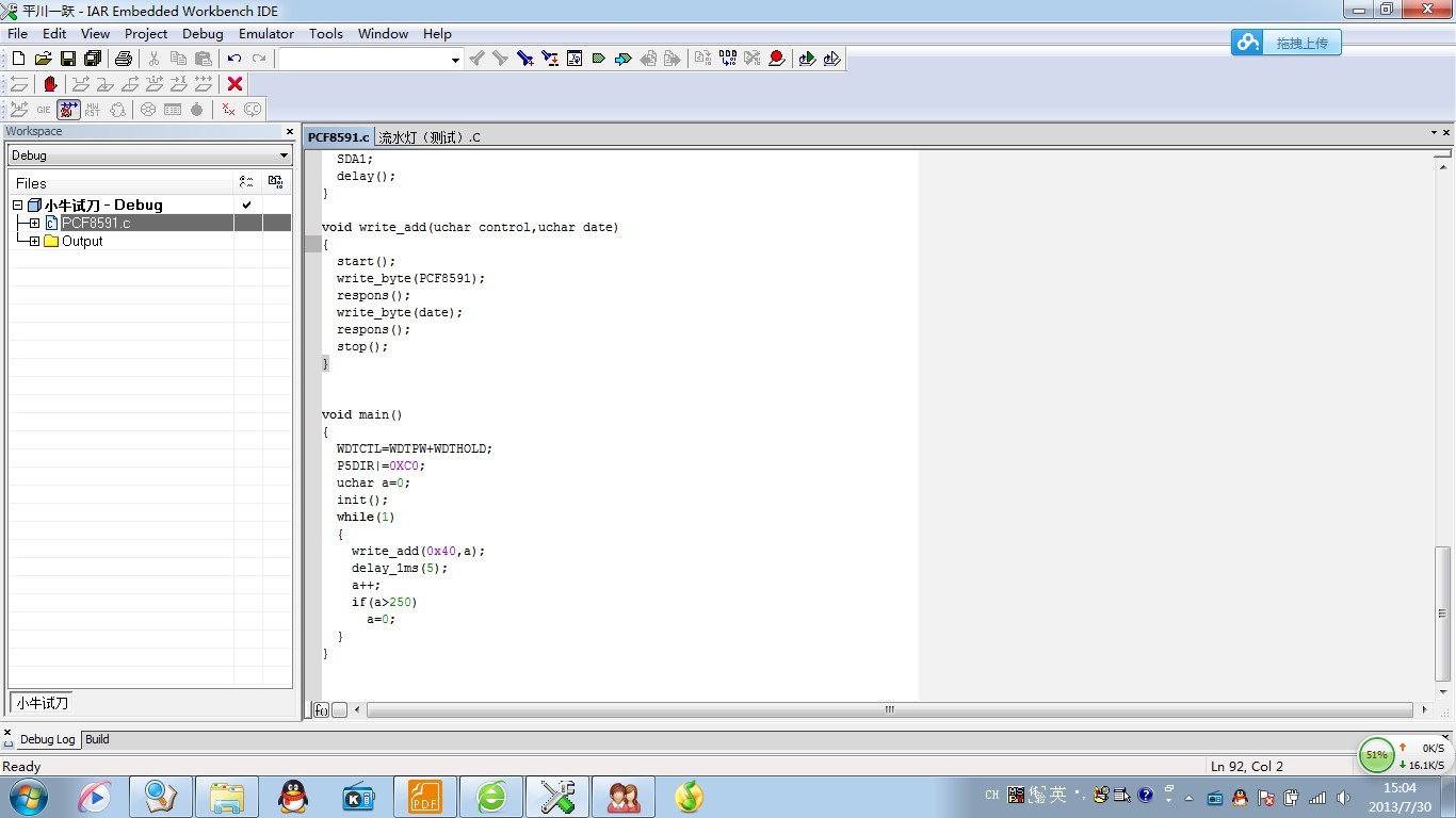 初学msp430开发板上pcf8591DA转换电路,不知程序哪里错了