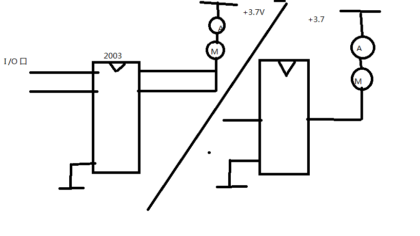 我在IO口后,接了如图所示的ULN2003的驱动电路。为什么芯片变得特别烫?有什么解决办法吗?