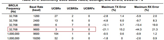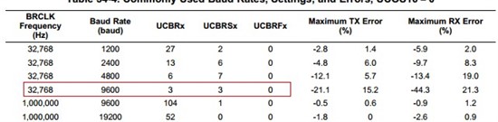32K/9600得到的不是整数,MSP430为了提高BRCLK的采样精度,增加了UCA0MCTL这个寄存器来调节BRCLK的采样,具体做法就是在一个BITCLK期间通过增加或者减少32K的一个时钟来尽量靠近9600波特率的采样时间。