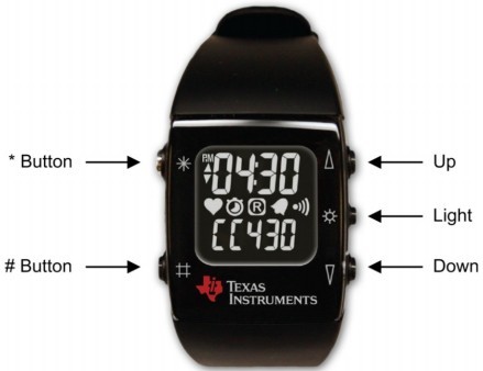 eZ430-Chronos 手表除了时间、日期等基本功能外,还提供了闹铃、秒表、电池电压、高度计、心率监控计、温度计、热量计、加速度和距离信息的计算显示功能。