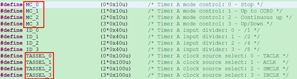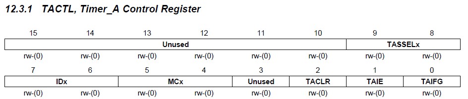 TACTL = TASSEL_1 + MC_1;     // ACLK, up mode