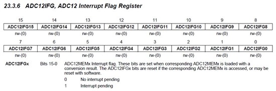 ADC12IFG是一个16位寄存器,BIT0 指的是最低位 ADC12IFG0。