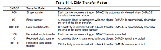 我用的是MSP430F5529,对于DMA模块,我想实现的是Fixed Address To Block Of Addresses,也就是如图所示: