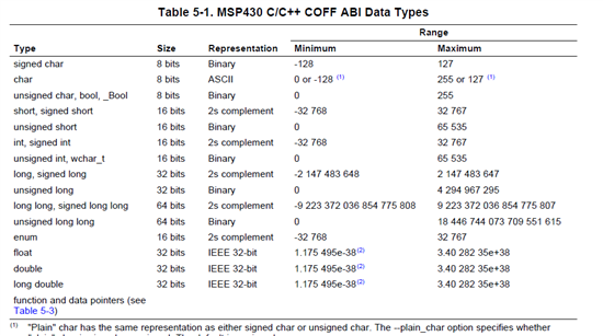 器件是MSP430F4XXX,开发环境是CCS5.1,想做一些数据处理,不知道430的double类型的长度,还有结构,求解!