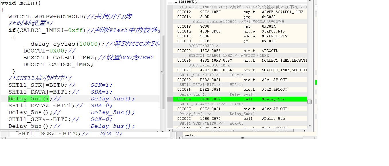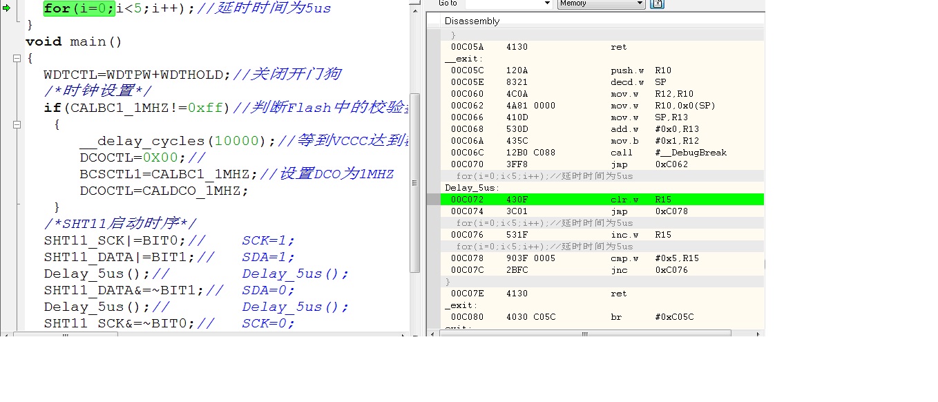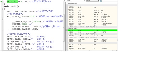 进入调试界面后,单步运行至Delay_5us();如第一张图片中所示;