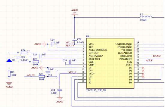 从TLC7135功能框图上看,/ST引脚为输出引脚。 该颗芯片与其他厂家的芯片相同,/ST引脚可以作为430的中断输入。