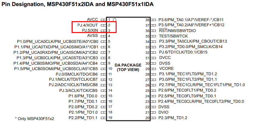 PJSEL |= BIT4+BIT5; // PJ.4 PJ.5开启第二功能即选择XT1