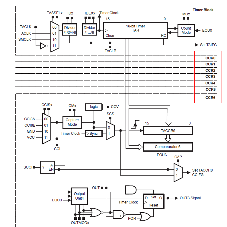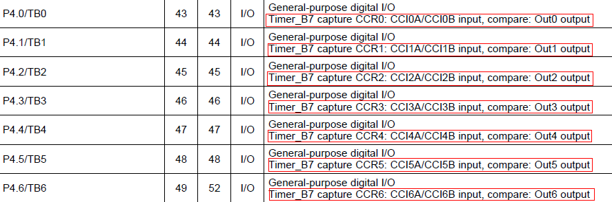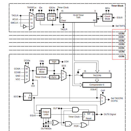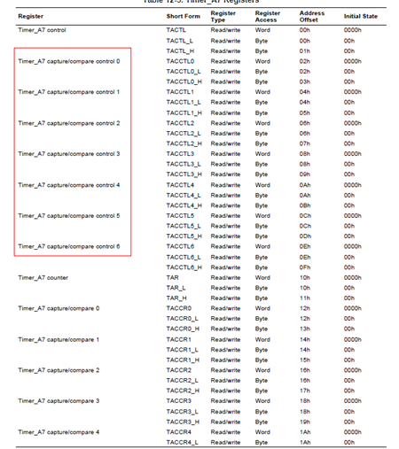 这里说timera有7个比较捕获模块,看了那个引脚表后彻底凌乱了,因为根本不知道那个是taccr几,求指导啊(和上面那个问题其实是一个问题)