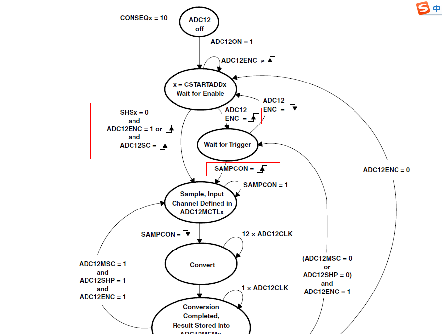 他的pdf上面是这样的,可以有两个方法开始采样,一个是只打开enc然后又采样脉冲的话就会开始采样转换,另一种就是把sc和enc同时打开,是不是这样来理解啊?