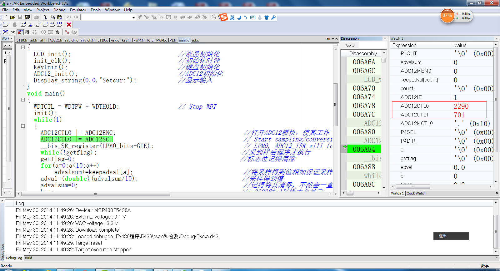 我使用的是5438a这款单片机,开发软件用的是IAR5.50版本在仿真的时候遇到了一些问题,