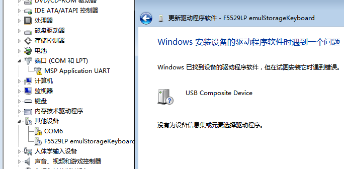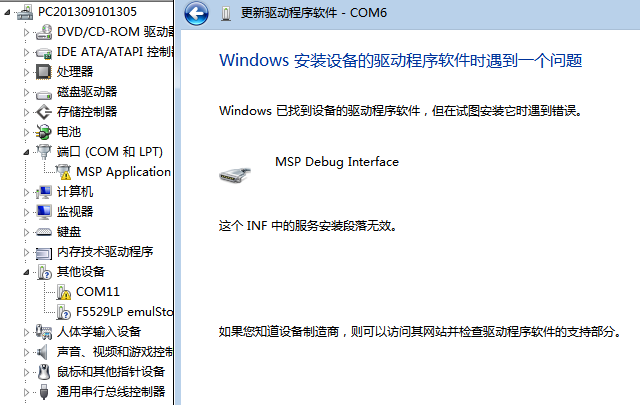 MSP430-EXPF5529LP驱动无法安装.具体情况请进帖子查看