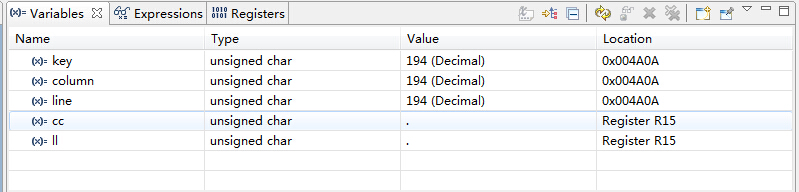一个键盘程序,KEY COLUMN 和LINE是三个不同的变量,结果分到的地址是一样的