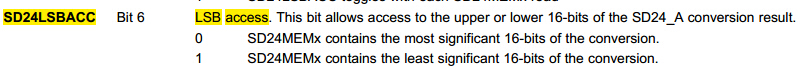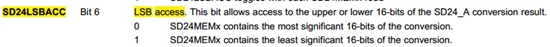 SD24MEMx中包含的转换结果,高16位或16位是不是以SD24LSBACC的设置为准?