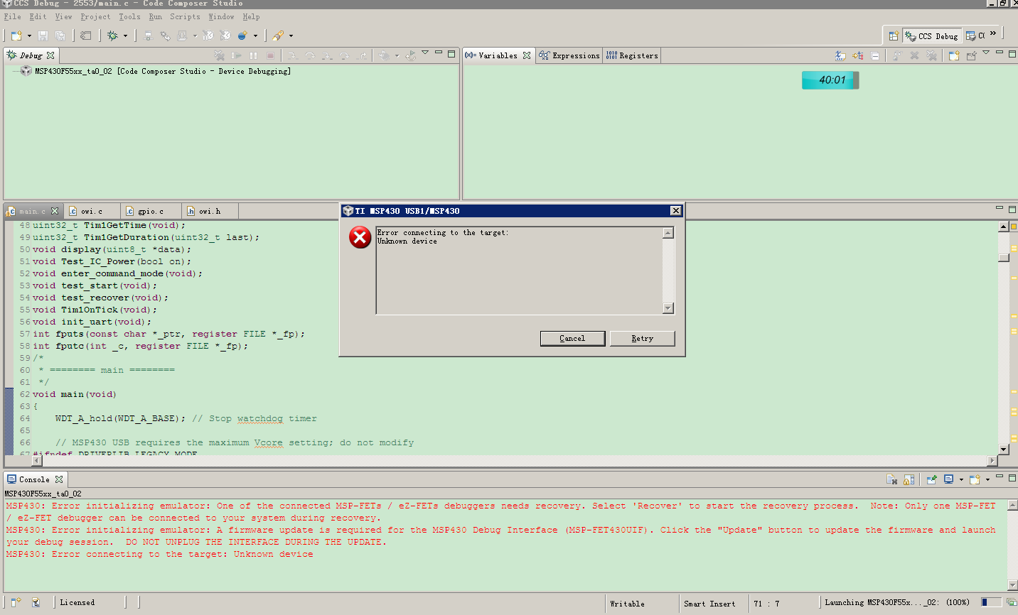 msp430f5520lp 仿真器不能仿真