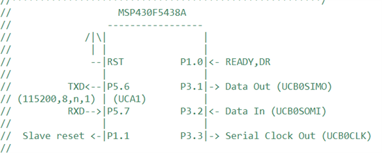 采用UCA1将数据传入上位机,利用UCB0进行SPI通信,主要的部分程序如下: