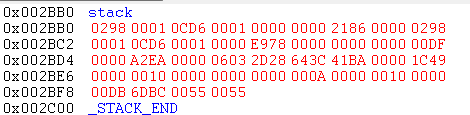 Stack虽然看起来没有超,因为还有0x55,但是也不能完全肯定,因为不知程序哪里占用最多。建议你再增大一下堆栈吧。