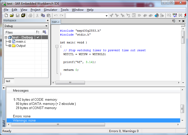 printf函数太大了,一个能显示float的大约到6~7K,类似于g2553之类的单片机总共才16K。