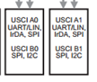 我现在的问题是:使用MSP430F247做一个项目,期间有好几个SPI外设(4个),我在设计原理之初进行端口分配时,查看datasheet 发现F247有USCI A and USCIB,USCI A底下有有A0 A1,USCI B底下又有B0 B1,然后手册描述USCI A和USCI B的区别在于可扩展功能不同,如USCIA 支持 UART、IrDA、LIN、SPI,USCI B支持IIC、SPI。