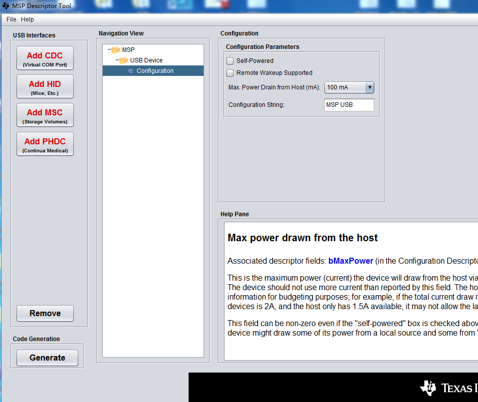 你好,我在用430F5529学习USB开发,但从TI官网上下载的MSPUSBDescriptorTool-5_00_00_19-windows-installer.exe文件,安装后好象没有可执行文件,无法得到5529开发板说明上所示的图(见附件),请问要如何使用MSPUSBDescriptorTool。