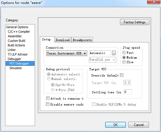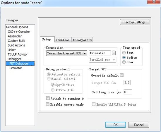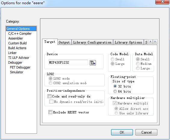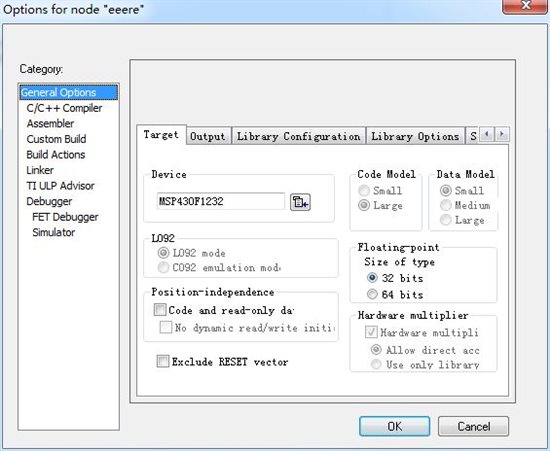 我们在IAR6.10开发环境下用利尔达FET430仿真器对F1232进行仿真;在project-option中选择MSP430X1XX后,发现Debug protocol中,不能自由选择接口标准;